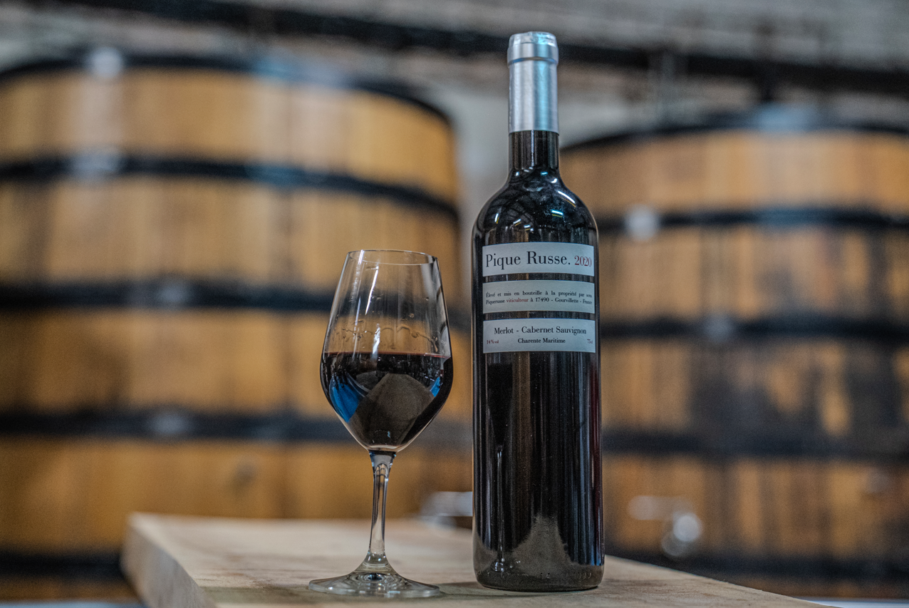 Pique Russe, c’est aujourd’hui 4 hectares de vigne en bio, cultivés sur des sols calcaires du Jurassique, à 110 mètres d’altitude, avec une haute densité de plantation et un travail entièrement manuel. Nous produisons des vins à partir de Merlot, Cabernet Sauvignon, Pinot Noir et Colombard, élevés en amphores, barriques ou cuves inox, pour révéler pleinement le terroir.